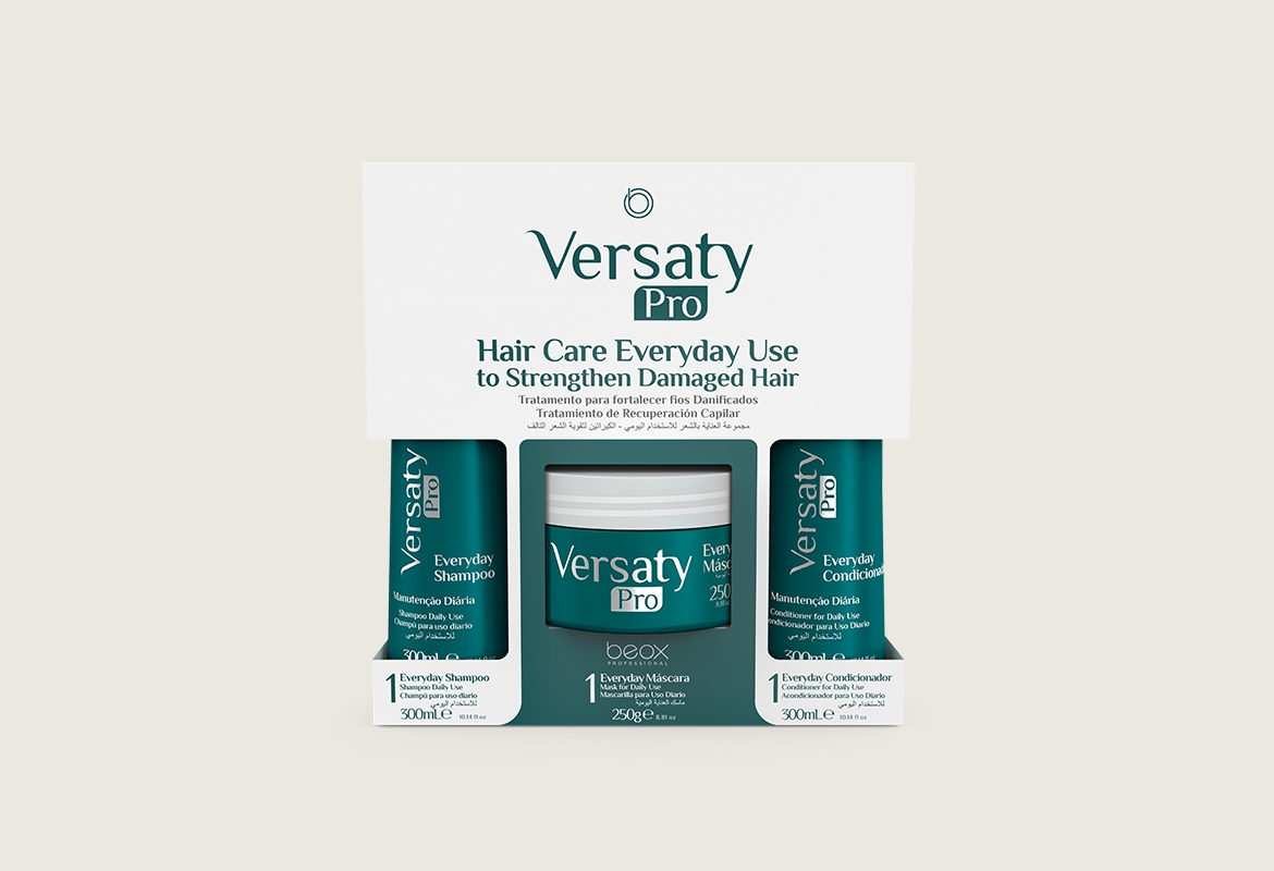 In order to mantain and extend hair care, continue the treatment at home using Versaty Pro Everyday Care Set, which includes shampoo, conditioner and mask.
